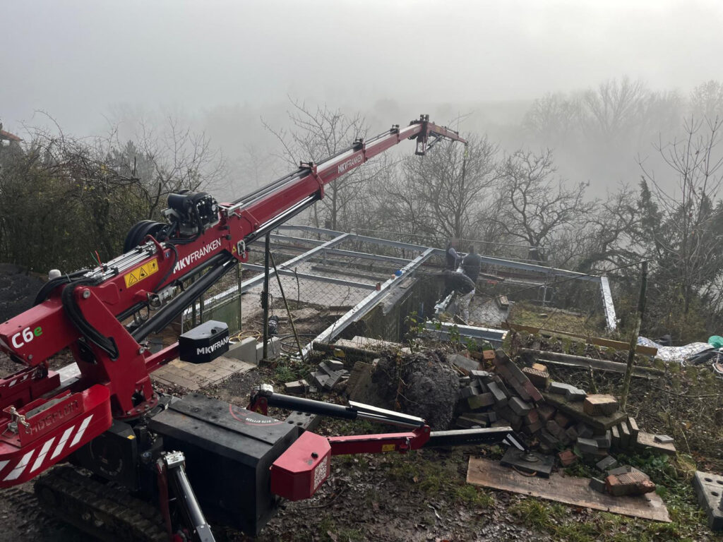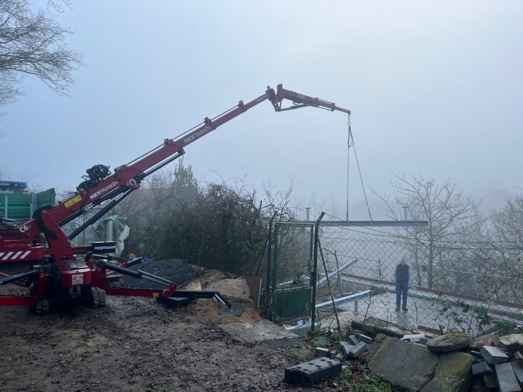 Unser Minikran durfte schon zu vielen Gelegenheiten zeigen, was er kann: Baumarbeiten, Glasscheiben einsetzen, Erdaushub in Wannen transportieren, Baumaschinen versetzen, Stahlträger einsetzen, Holzhäuser aufbauen, Lasten heben und vieles mehr. Wozu möchten Sie unseren Minikran mieten?